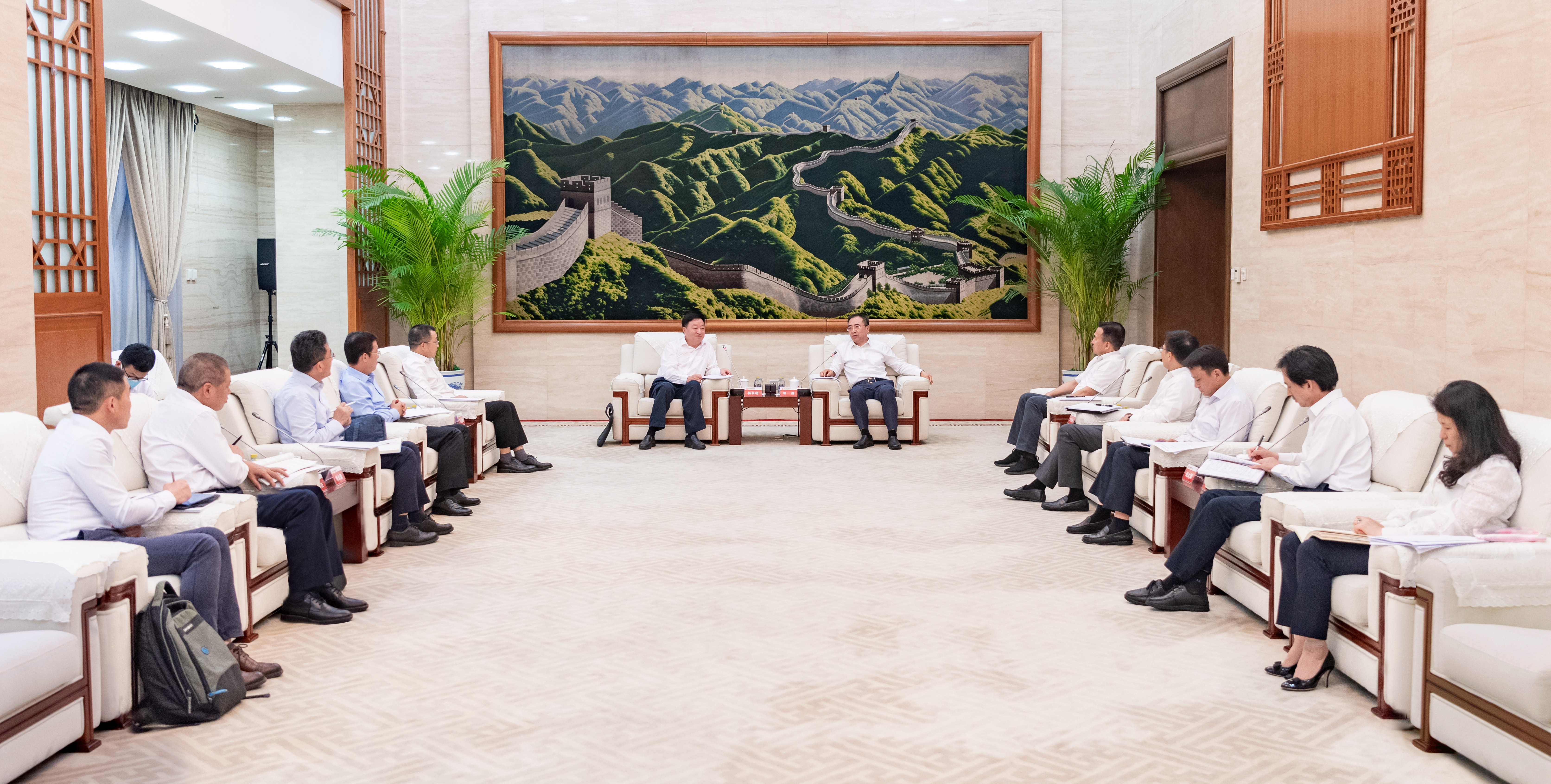 鄒磊、劉明勝對楊長利、高立剛一行到訪表示歡迎,感謝中廣核集團一直以來對中國大唐的關心和支持。鄒磊表示,中國大唐堅決貫徹落實黨中央、國務院決策部署,自覺履行能源央企政治責任、社會責任,全力保障能源電力穩定供應,加快推進能源結構調整,推動產業轉型發展。中國大唐高度重視核電產業發展,與中廣核集團長期以來在核電領域保持著良好合作關系。希望雙方進一步加強溝通交流,發揮各自資源優勢,加快推進合作項目建設,在核電高效利用、新能源基地化開發、科技創新等方面開展全方位合作,攜手開啟央企務實合作新篇章,共同服務國家“雙碳”戰略。