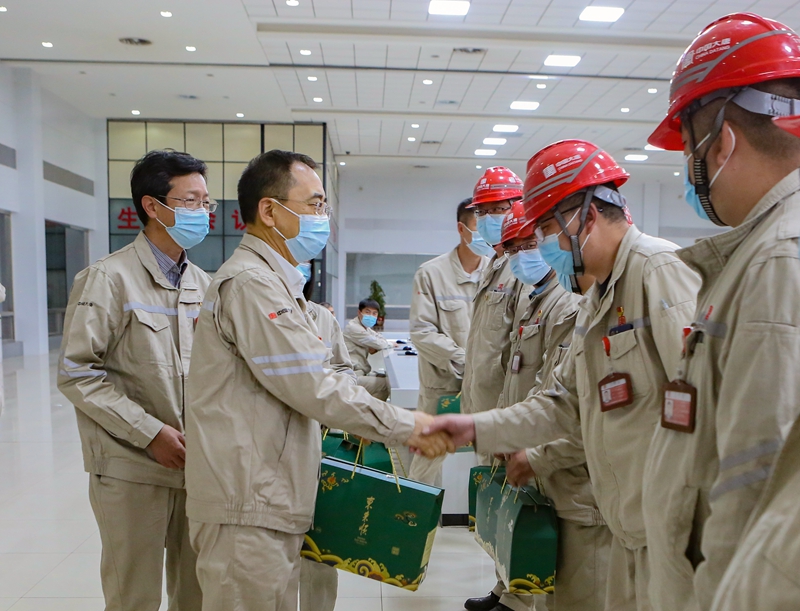 鄒磊一行來到多倫煤化工公司、克旗煤制天然氣公司中央控制室,代表集團公司黨組親切慰問奮戰在煤化工戰線的干部職工,向部分職工代表、勞動模范、青年職工送上慰問品,并實地查看生產區域整頓整改情況。鄒磊表示,廣大干部職工在過去一年奮力拼搏、銳意進取,取得了來之不易的成績。大家要繼續腳踏實地、一步一個腳印,咬定青山不放松,以煤化工高質量發展新業績推動集團公司“二次創業”不斷走深走實。