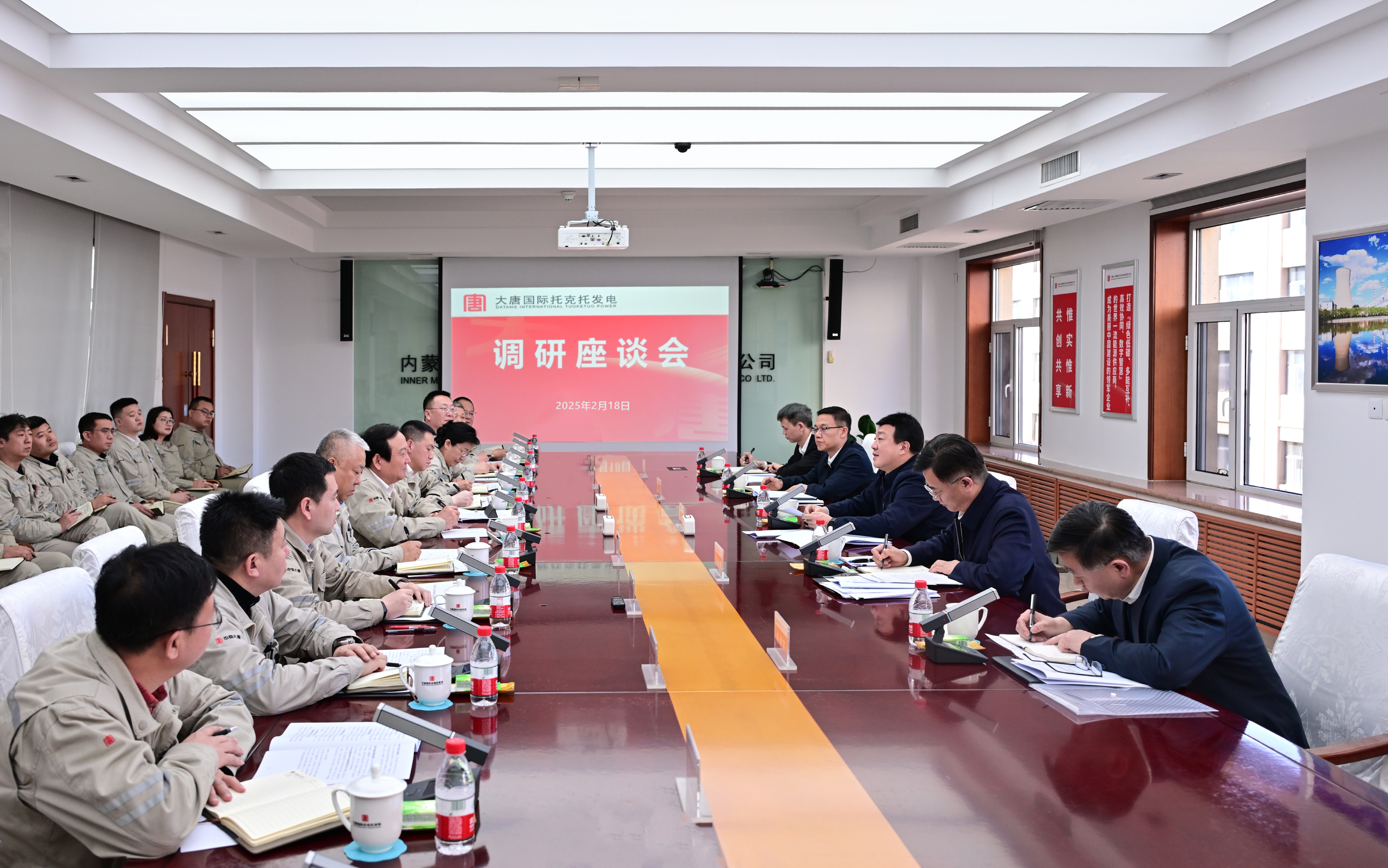 集團公司總部有關部門負責人及相關人員、大唐國際主要負責人等參加調研。托電領導班子成員、中層干部以及職工代表參加調研座談會。