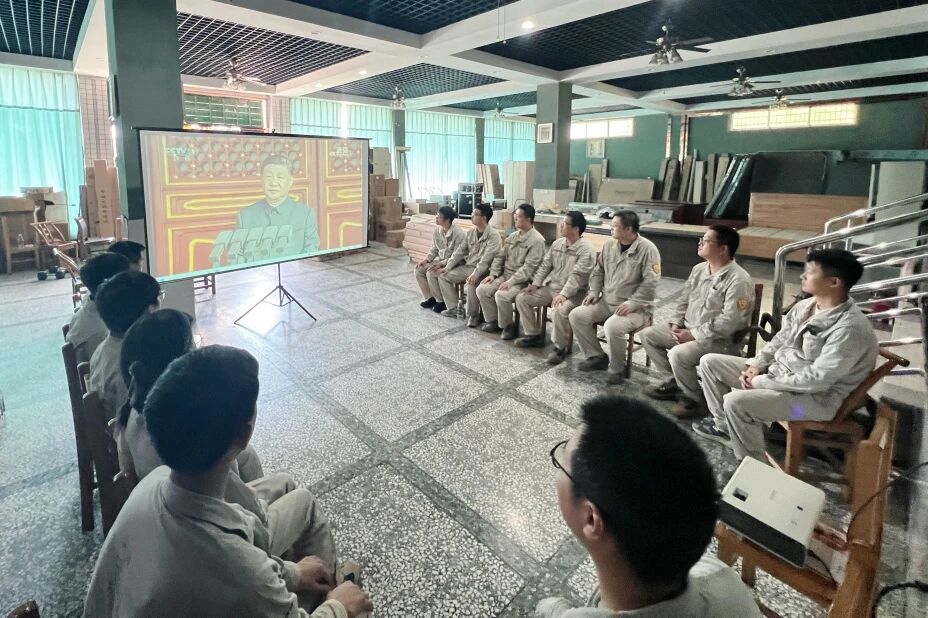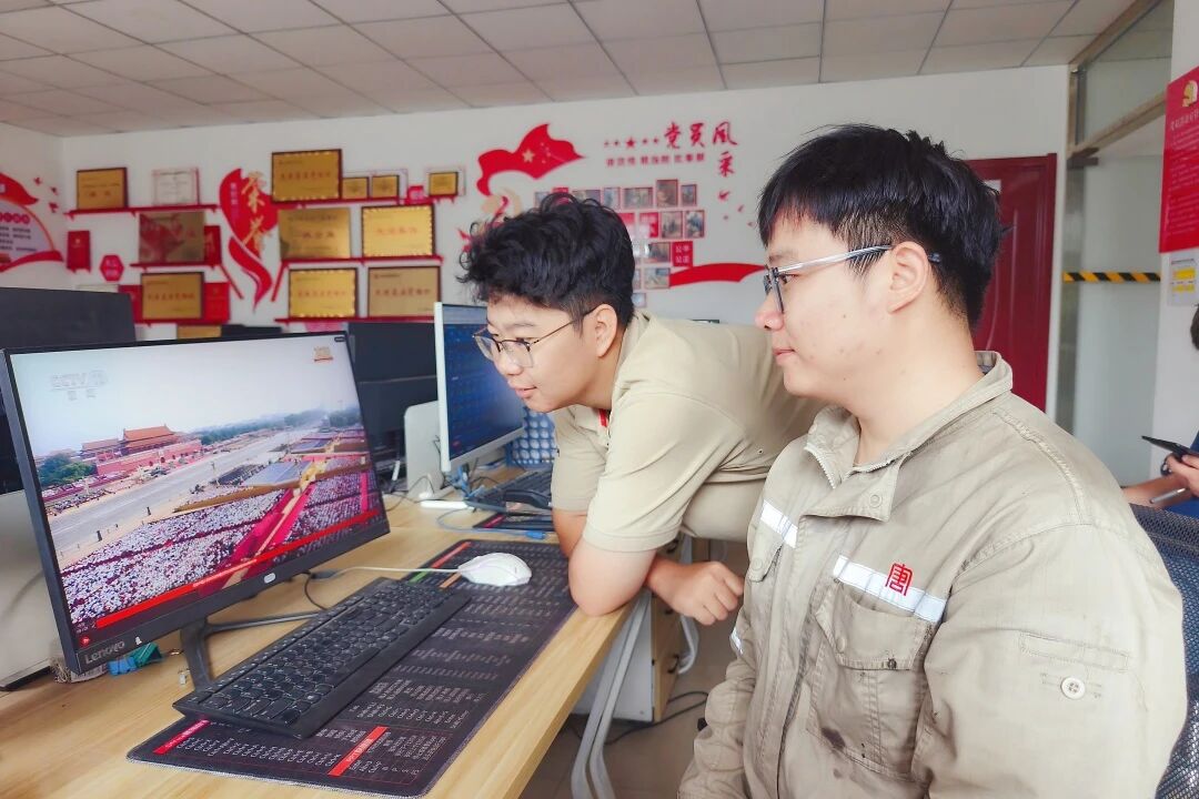寧夏分公司組織職工收聽收看九三閱兵直播,共同見證這一激動人心的歷史時刻,眼神中充滿了自豪與敬意。