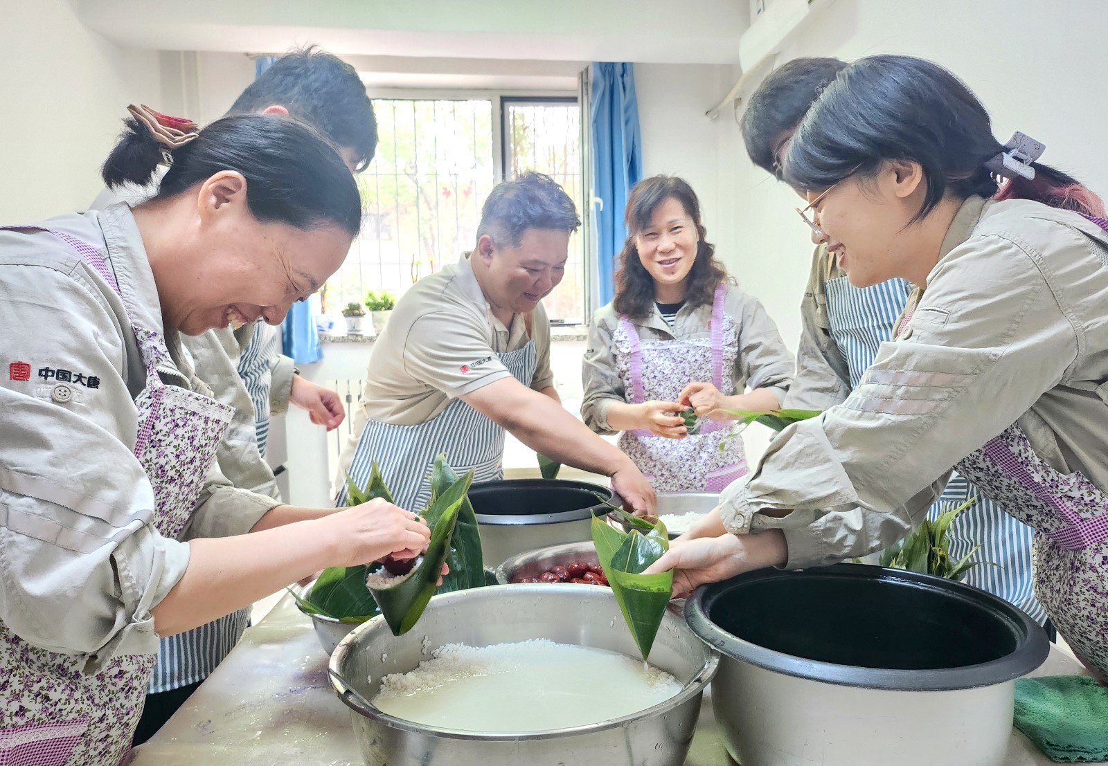 職工們踴躍參與,提前準(zhǔn)備好了粽葉、棉線、糯米、紅棗等材料,在活動中相互交流包粽子的手法、分享的端午節(jié)趣事,其樂融融。