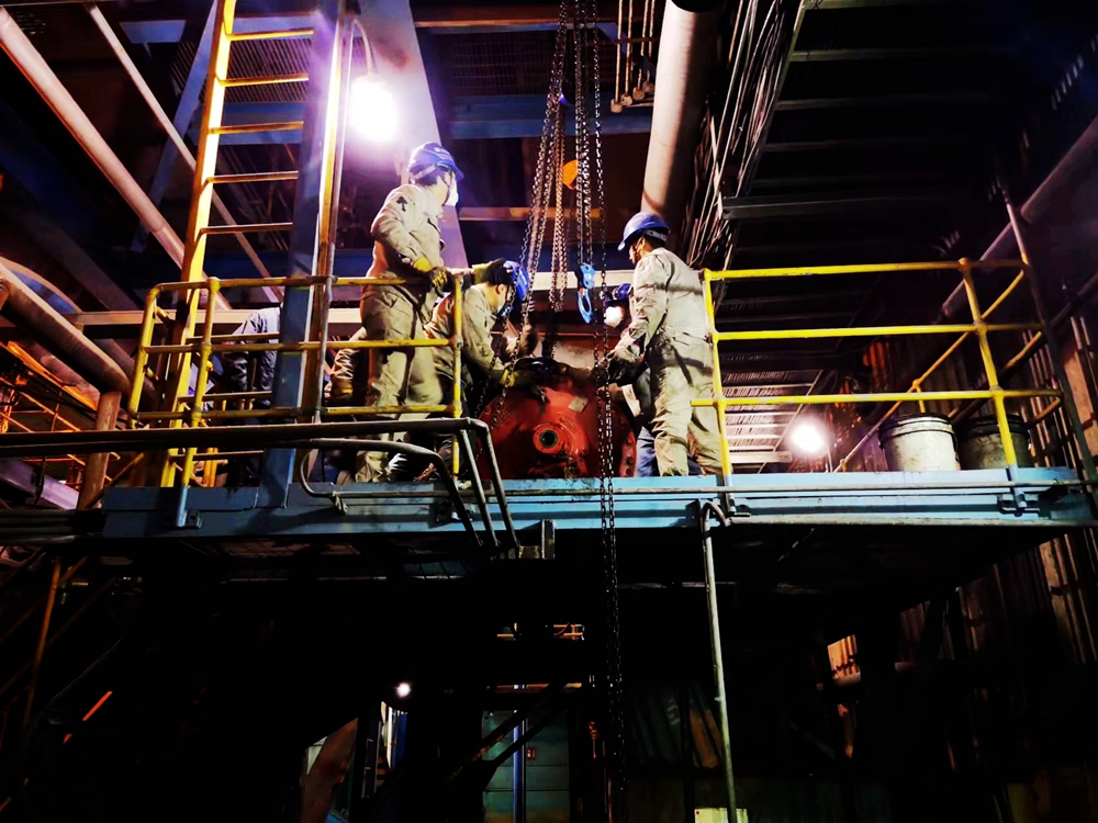 搶修4號(hào)鍋爐撈渣機(jī)(王小周/攝)